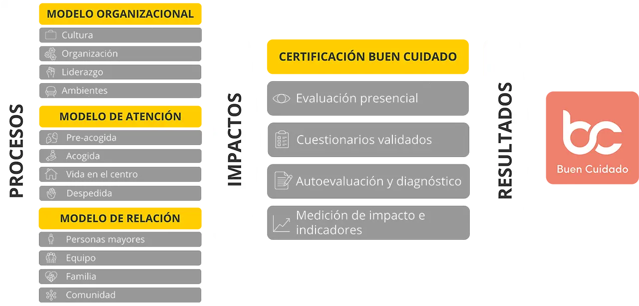 No se trata solo de cumplir con est谩ndares m铆nimos, sino de garantizar una transformaci贸n real en los modelos de cuidado. A trav茅s de criterios objetivos, una evaluaci贸n rigurosa y procesos de mejora continua, el sello garantiza que los centros y servicios certificados representen un verdadero modelo de excelencia en el cuidado.